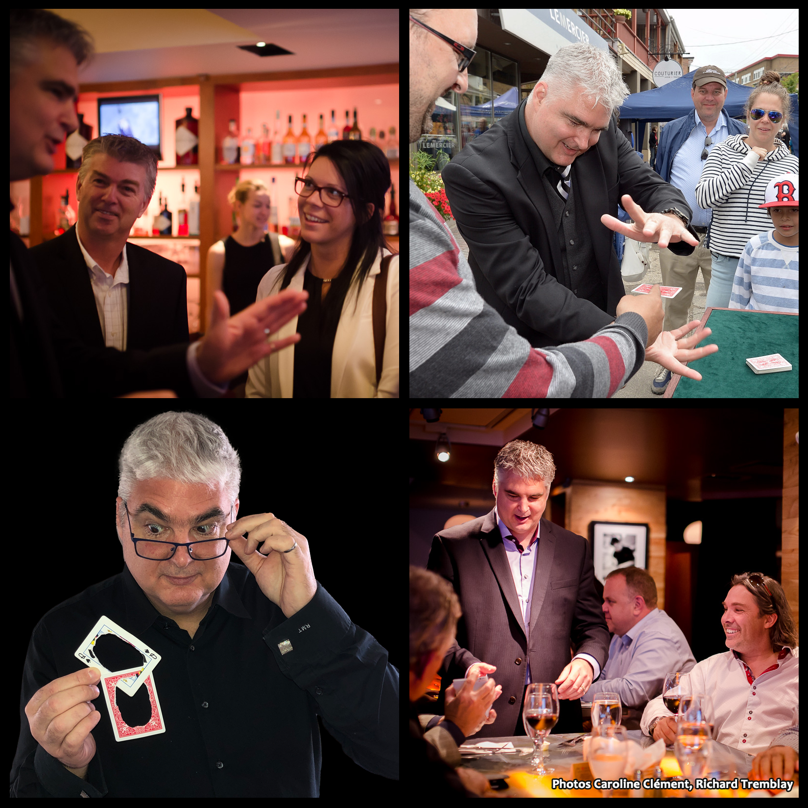 Cet artiste magicien va à la rencontre de vos invités et les amène à vivre une expérience hautement interactive où la magie se passe à seulement quelques centimètres de leurs yeux et bien souvent… directement dans leurs mains! Souvenirs impérissables garantis! Parfait lors de cocktails et repas à l’occasion d’événements corporatifs.